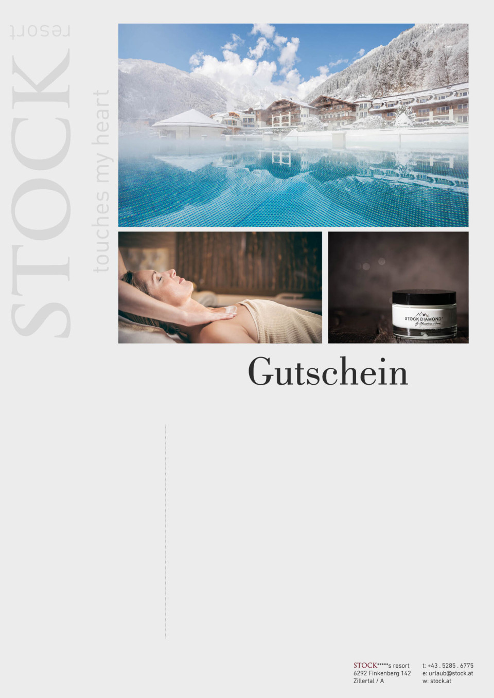 Hier entscheiden die glücklichen, beschenkten STOCK Gäste selbst, ob sie den Gutschein bei der Logis abziehen, sich in unserem STOCK DIAMOND SPA verwöhnen lassen oder einfach in unserem STOCK Shop ein tolles Produkt kaufen möchten. Dieser Gutschein ist auf jeden Fall ein Geschenk wert.